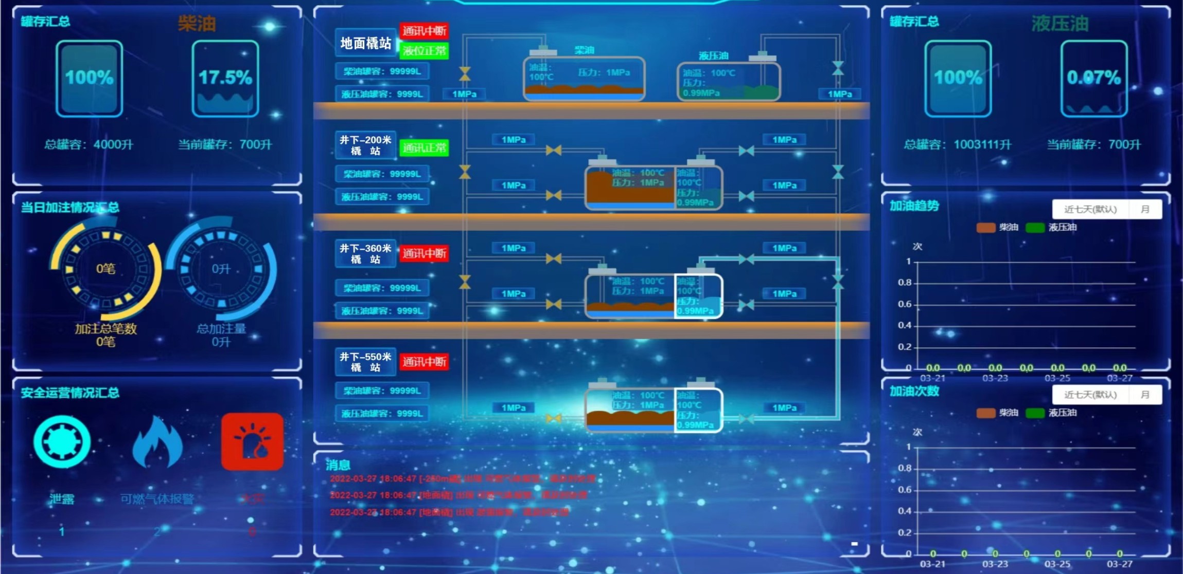 凡口鉛鋅礦井下680米智能供油系統(tǒng) 目前正有序施工中, 預計9月底完工并投入使用。該項目為全國首創(chuàng), 由韶關企業(yè)進行技術攻堅 并申請多項國家專利, 擬申報吉尼斯世界紀錄 “全球最深的智能供油系統(tǒng)”。 凡口鉛鋅礦井下智能供油系統(tǒng) 需在地面設置橇裝加油裝置, 并分別在地下 330米、480米和680米處 建設智能化供油系統(tǒng), 通過鉆孔鋪設輸油管線, 將油品從地面輸送到井下。 地下330米智能加油點, 目前已進入收尾階段, 現(xiàn)場有兩根 從地面裝置接下來的輸油管, 用于工程車加油, 另一邊也有兩根輸油管輸送到 地下480米和680米的智能加油點。 別看油管很細,鉆孔不大, 但施工難度并不小, 全長3千多米的輸油管, 垂直打孔偏差不能超過1米。 作為亞洲最大的 單體鉛鋅銀礦生產基地, 凡口鉛鋅礦 有井下工程車輛和設備100多臺, 井下用油量大。 井下智能化供油系統(tǒng)啟用后, 不僅解決井下用油安全、環(huán)保風險, 同時降低生產用油成本, 推進凡口鉛鋅礦建設智能化礦山, 實現(xiàn)“無人開采”。 如果鉆孔偏差太大,就找不到鉆下來的孔,影響輸油管道的布設,增大成本。3千多米有5千多個焊接點,所有的焊接口都要達到高壓管道的焊接要求,這個項目是全國首創(chuàng),在全國所有礦山企業(yè)中,我們是首次使用通過輸油管道往井下輸油,并且實現(xiàn)智能控制的方案。 這個月底把地下330米加油點完工,開始加油,9月底把底下480米和680米開通使用。希望通過這個項目打造創(chuàng)新科技的韶關樣板,把先進的經驗和技術推廣到全省、全國乃至全球。